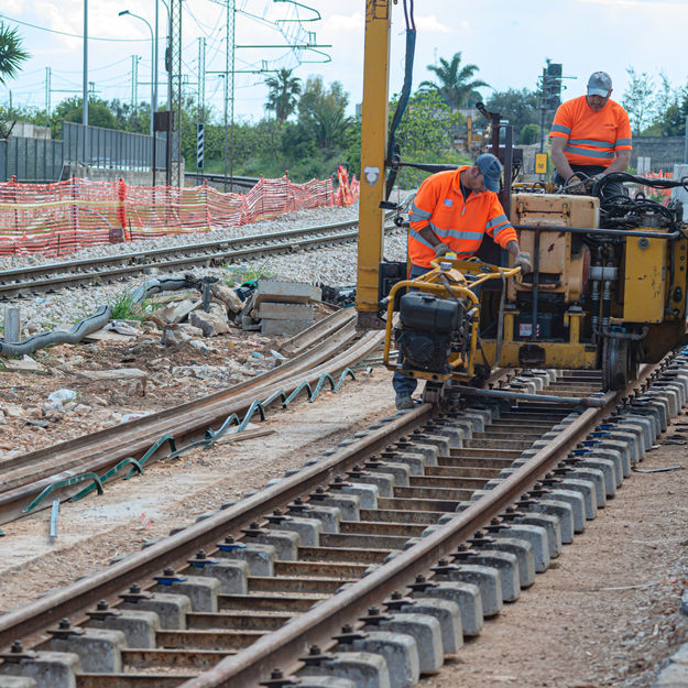 Vías de ferrocarril y espuelas.